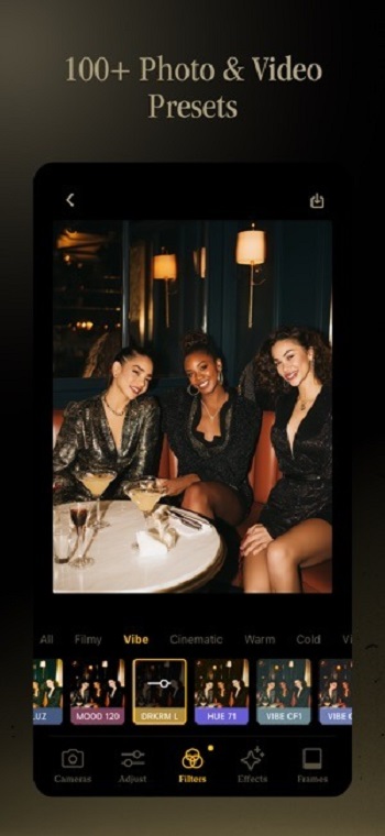 Choose from dozens of filters that you can preview before taking the shot. From vintage styles to cinematic tones, these filters help you set the perfect mood instantly.